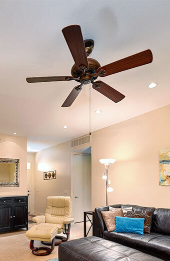 Yes, ceiling fans are incredibly energy-efficient, using only about 2-5% of the electricity that air conditioners consume. While they don’t actually cool the air, they create a wind-chill effect that can make a room feel 4-8 degrees cooler. Many of our customers use ceiling fans alongside air conditioning, which allows them to set their thermostats higher while maintaining comfort, resulting in significant energy savings throughout the year.
